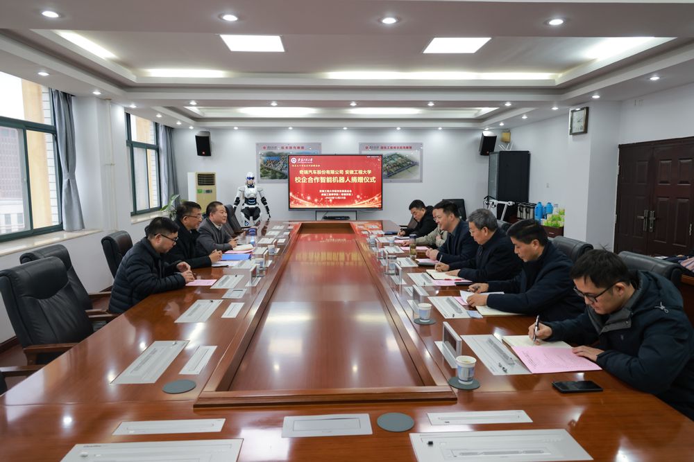 在安徽工程大学校庆90周年之际,12月23日,奇瑞汽车股份有限公司向安徽工程大学捐赠仪式在A座1213举行。奇瑞汽车股份有限老澳门六合彩开奖网发言人金弋波、奇瑞国际副总经理兼墨甲机器人副总经理黄招根,党委常委、副校长凤权,奇瑞汽车股份有限公司工作人员代表及学校相关职能部门、老澳门六合彩开奖网 负责人出席仪式。